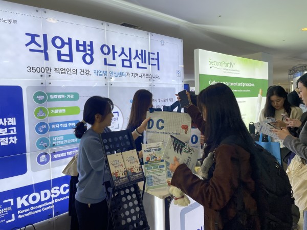 부스에서는 방문해주신 분들에게 감사의 마음을 담아 홍보물품, 리플렛과 안내문을 나누어 주면서 응급의학 전문의, 전공의, 응급구조사, 응급실 간호사 등을 대상으로 직업병 안심센터 소개와 의심사례신고 안내 방법을 설명하는 홍보활동을 하였습니다.